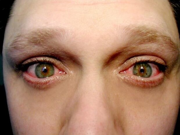 - сильное покраснение и отёчность глаз;