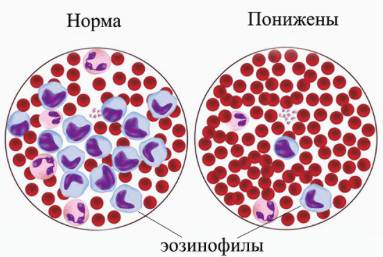 Явное и стабильное снижение эозинофилов в крови человека свидетельствует о патологическом процессе. Наиболее частыми причинами, которые приводят к тому, что эозинофилы понижены по отношению к общему числу лейкоцитов являются: