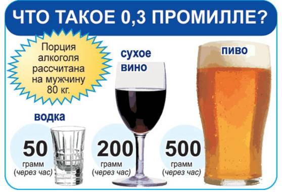 На данный момент в России допускается норма промилле 0,3 грамм на литр крови.