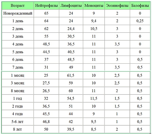 Норма нейтрофилов для женщин и мужчин одинакова, но может отличаться в зависимости от возраста пациента. Если нейтрофилы повышены у взрослого, то показатель больше 6,5×109/л. В процентном соотношении они более 70. В детском возрасте (до года) норма составляет 1,8-8,55×109/л (30,1-50,1%). У малышей 1-6 лет 2,21-6,21×109/л (35-55%). С 6 до 12 лет уровень составляет 2,21-6,57×109/л (40,1-60,3%).