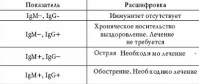 - IgG – говорит о хронической стадии болезни либо о выздоровлении и формировании иммунитета.