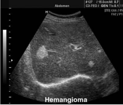 УЗИ – данный метод исследования эффективен только в том случае, когда очаговое образование располагается на передней части органа. Чем глубже место ее локализации, тем менее точным будет диагноз. Результаты УЗИ обязательно должны подтверждаться КТ или МРТ, что позволит дифференцировать опухоль от злокачественной, а также определиться с лечением.