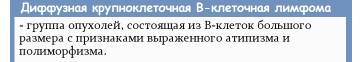Диффузная В-клеточная крупноклеточная лимфома быстро нарастает, прогрессирует, но в целом хорошо поддается лечению.