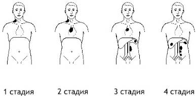 Она может зарождаться самостоятельно, либо трансформироваться из другой лимфомы (например, фолликулярной). Стадии ДВКЛ определяют в зависимости от степени поражения тканей и органов.